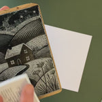A cozy winter cottage rubber stamp perfect for Christmas cards & gift wrapping. Featuring a detailed snowy house scene with starry skies and rolling hills, inspired by my own cozy Cornish Christmas winters, this stamp brings a handmade touch to your holiday postcards, gift tags, and seasonal packaging. Designed with love, it helps you create stunning DIY Christmas cards and gift tags with an organic, natural look that feels truly festive and special.